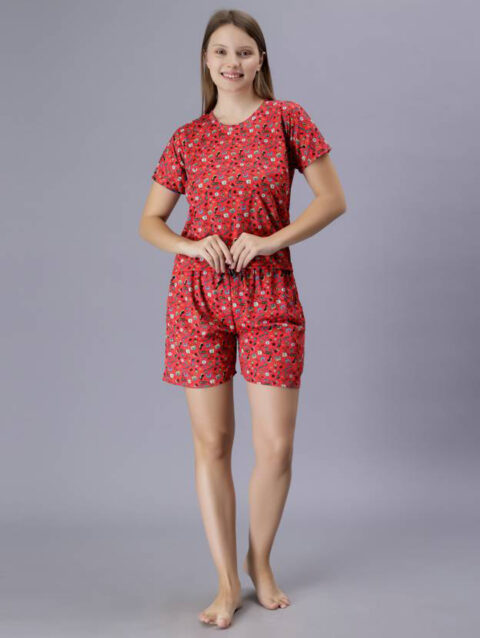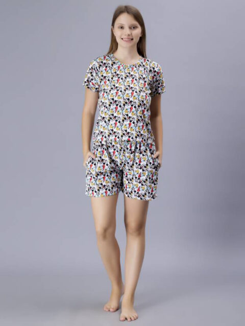 Queenabel Women Top & Pyjama Set Multicolor Printed