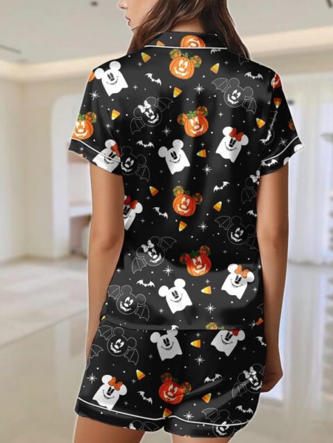 Queenable Women’s Halloween Satin Pajama Set – Short Sleeve Button Down Shirt & Shorts Nightwear Sleepwear