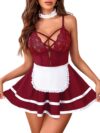 Queenabel Lace Bodysuit Lingerie Set Babydoll Chemise With Garter Belts